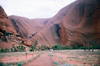 | エアーズロックは間近で見ると想像以上に大きく、迫力があります。 |